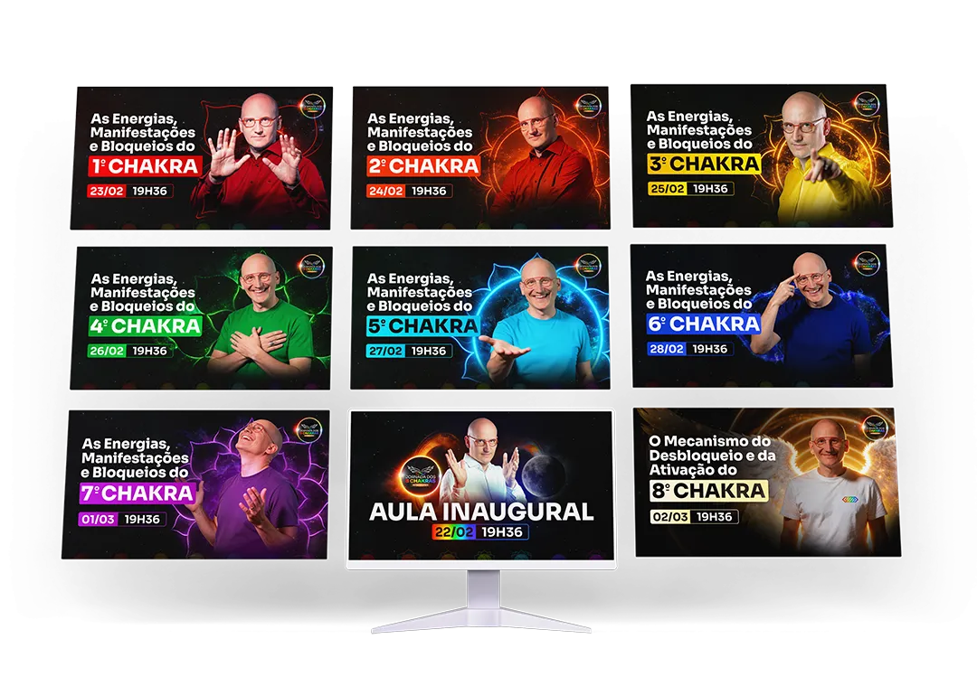 Serão 11 encontros ao vivo com Stefano Gradi: rituais, meditações e práticas terapêuticas avançadas para aprofundar o seu processo de desbloquear os 7 chakras e ativar o 8º chakra.