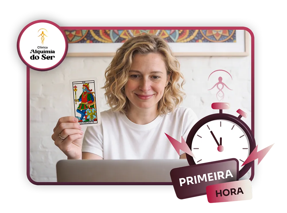 Todos que adquirirem na primeira hora de abertura das inscrições concorrerá a 1 sessão individual e online, privativa, de Leitura de Tarô Astrológico com uma terapeuta da Clínica Alquimia do Ser.