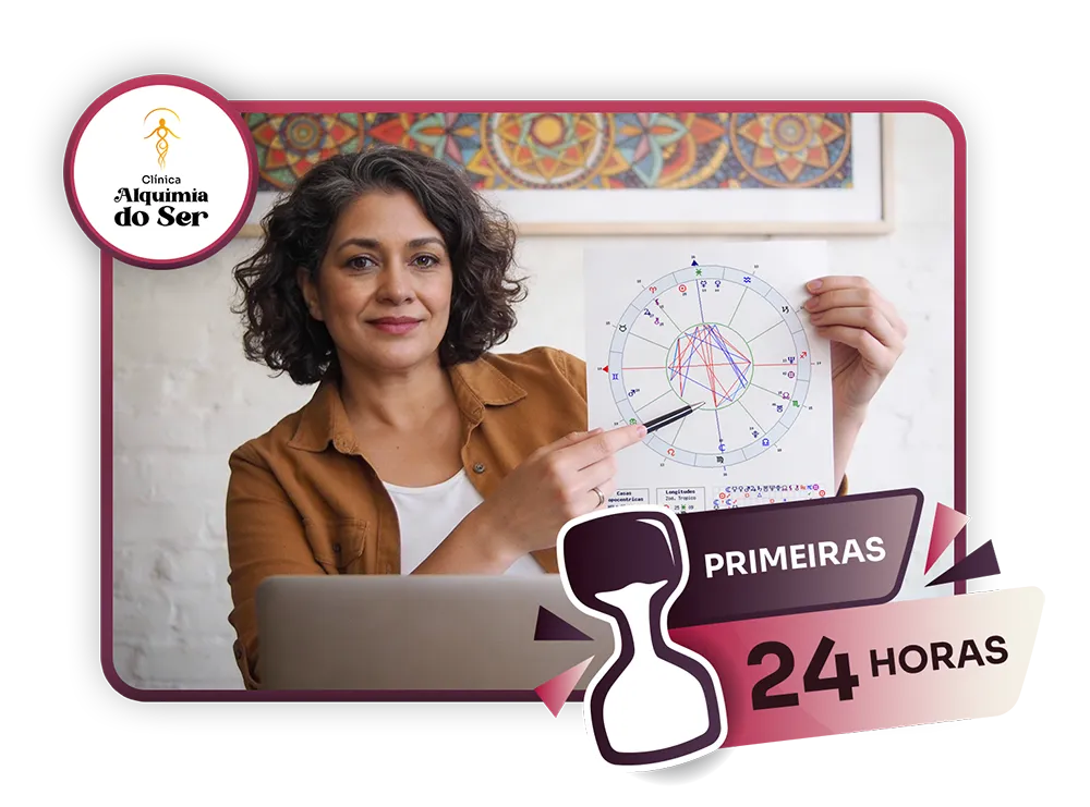 Todos que adquirirem nas primeiras 24 horas de abertura das inscrições concorrerá a 1 sessão individual e online, privativa, de Leitura de Mapa Astral com uma terapeuta da Clínica Alquimia do Ser.